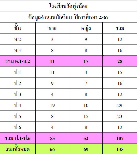 ข้อมูลนักเรียน ปีการศึกษา 2567